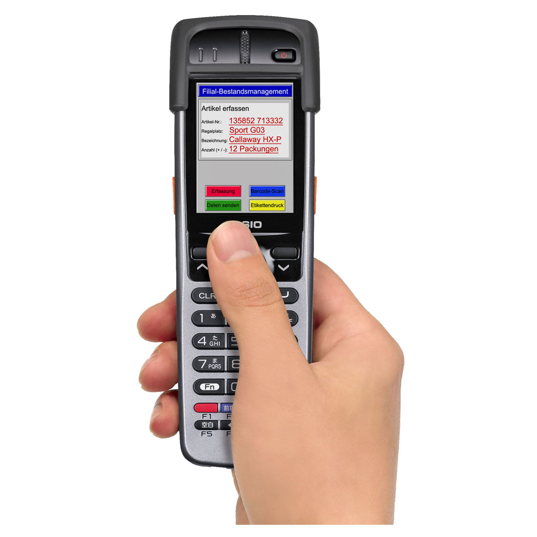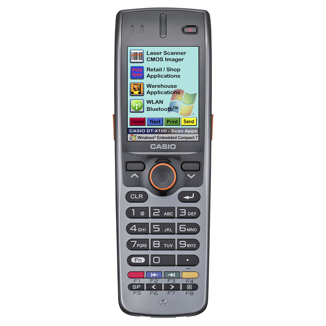 Hlava skeneru CASIO DT-X100 směruje dolů, takže zařízení může sedět pohodlně v ruce, přitom i při skenování uživatel vidí na displej přístroje. Ergonomické umístění tří tlačítek pro skenování zajišťuje, že zařízení může být provozováno jak praváky, tak i leváky a to snadno s minimálním pohybem prstu.