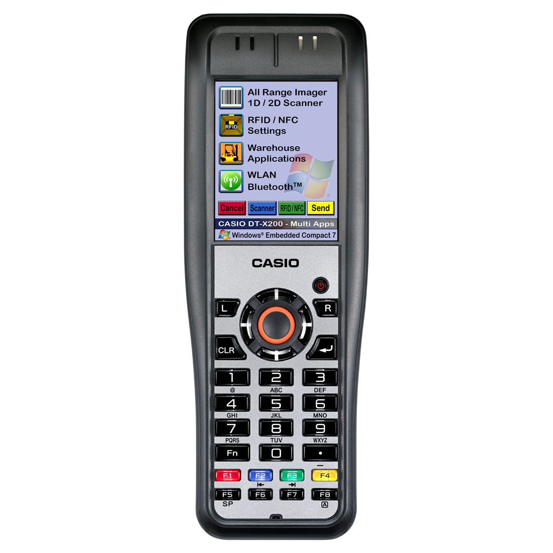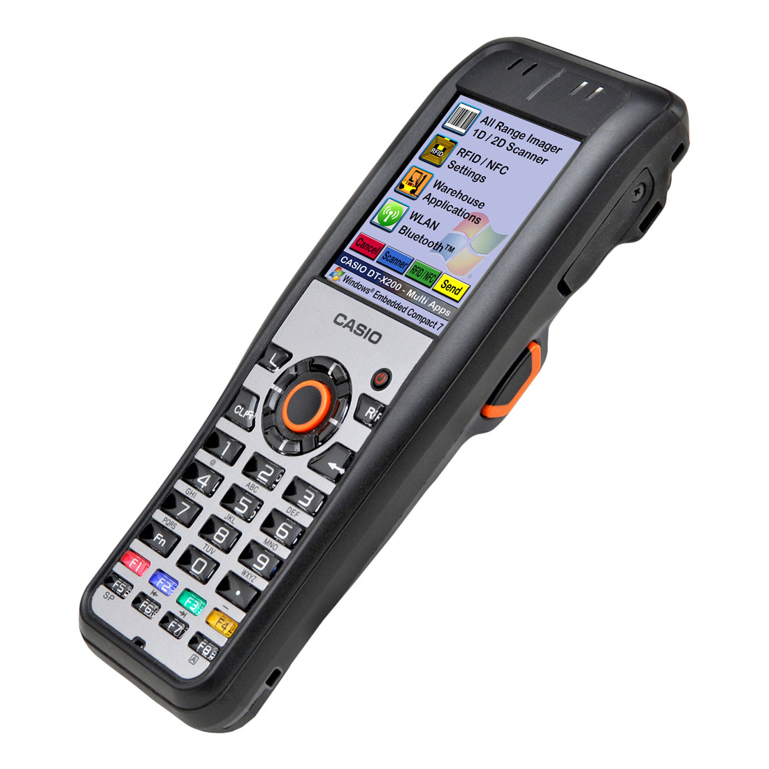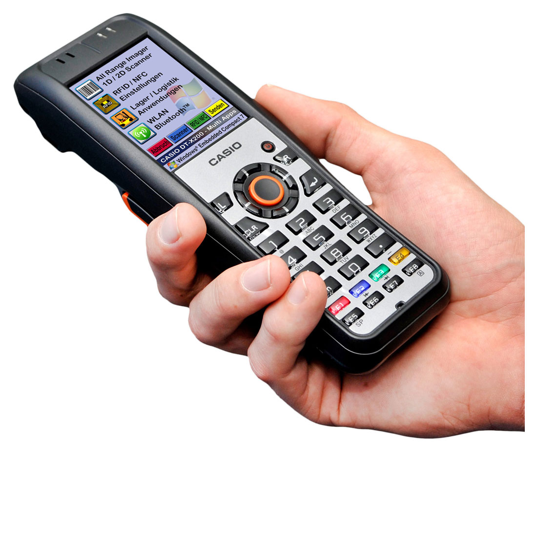 CASIO DT-X200 je vybaven procesorem Marvell® PXA 320 (806 MHz), který nabízí dostatek výkonu. Operační systém Microsoft® Windows® Compact 7 na mobilním zařízení umožňuje velmi snadnou integraci do stávajících aplikací a standardních řešení. Integrovaný Bluetooth® (2.1) a Wi-Fi (IEEE 802.11 a / b / g / n) umožňuje rychlou datovou komunikaci.